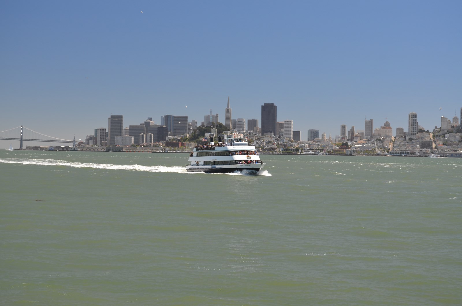 Ajungem relativ repede pe Bay Bridge, podul ăla pe două niveluri de care ţi-am povestit aici şi uşor uşor mă mai obişnuiesc şi eu cu dimensiunile petrolierului din dotare, cu toate că la un semafor era să ma urc pe unu’ că nu i-am văzut maşina de joasă ce era.