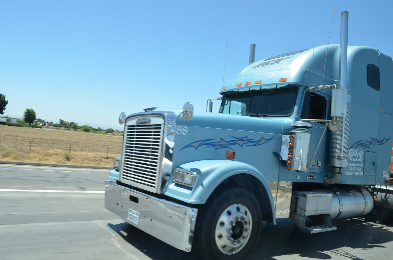 Plecăm spre destinaţia noastră, bucurându-ne de autostrada cu câte 4-5 chiar 7 benzi, pe alocuri, fotografiind la greu tradiţionalele camioane americane (old american trucks) după care eu sunt înebunit. Fac eu pozele, nu de la volan mă că între timp am trecut în dreapta, şi surprind chiar şi ciudăţenii de camioane şi tot felul de „monştrii” de maşini care mai de care mai mare şi mai V12-eată!