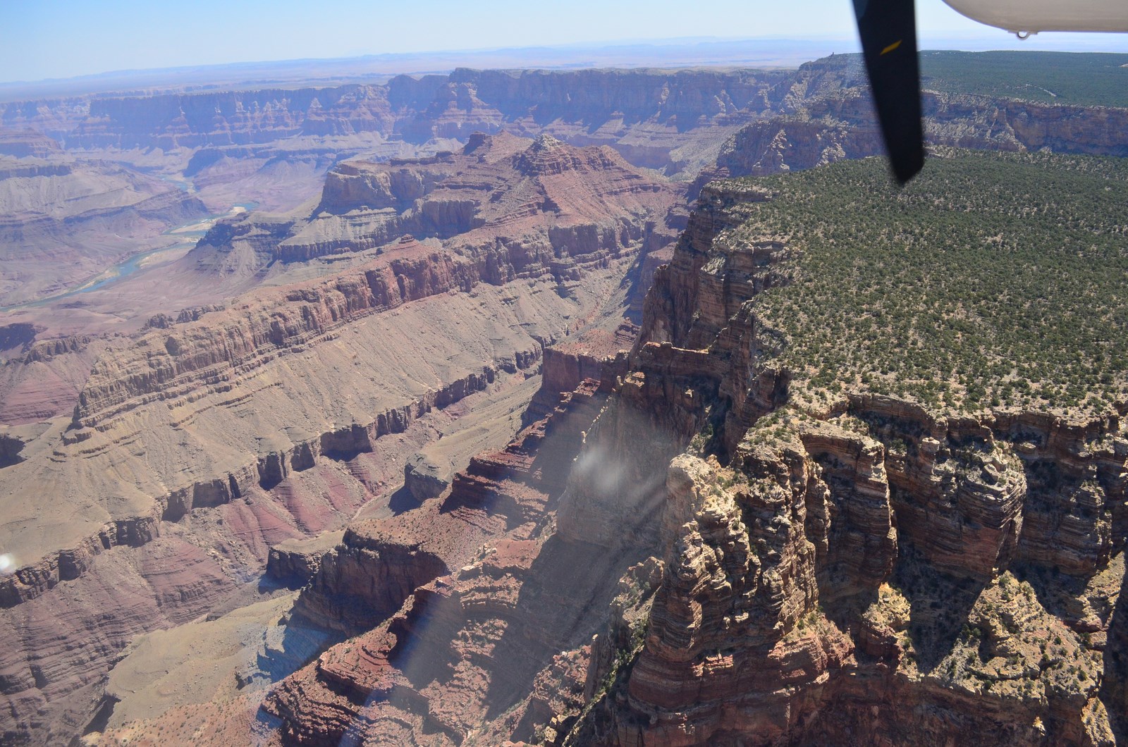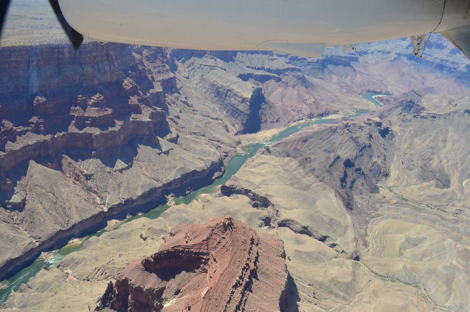 Am ajuns deasupra canionului și prin miracol s-au oprit și trepidațiile și putem să admirăm fără stress întinderea deosebită de peste 446 de km creată în decursul a milioane și milioane de ani. În căști ne era descrisă priveliștea de către nenea pilotul, sau copilotul că nu am înțeles bine cine manșa lor ținea comenzile pentru că la vreo două manevre cel din stânga care era pilotul a ezitat și l-a întrebat pe celălalt spre exasperarea unora dintre noi.