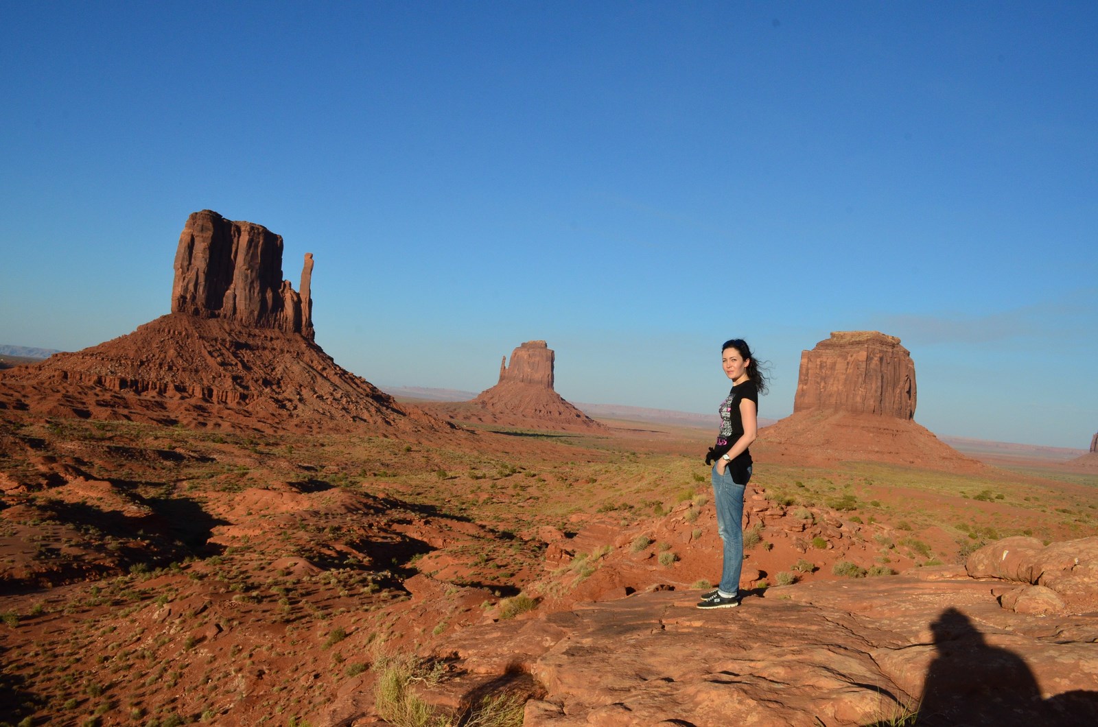 Hai, ca să nu mai supărăm chinezi dornici de socializare, ne continuăm drumul prin vestul sălbatic până ajungem la granița cu statul Utah, dar nu mergem nici 2 km că trecem iar în Arizona și o ținem așa pe graniță până când ajungem la intrarea în rezervația indienilor Navajo. Indienii ăștia, fără pene și machiaj pe față, s-au făcut mari antreprenori între timp și acum ei gestionează și faimoasa zonă Monument Valley. I-am zis înadins faimoasă pentru că, chiar dacă poate numele nu îți sugerează prea multe, imediat ce o să vezi imaginile o să-ți amintești instant de toate filmele western și de toate desenele animate unde actiunea se petrecea în vestul sălbatic și mai tot timpul apăreau pe fundal misterioasele forme de relief prezente aici.